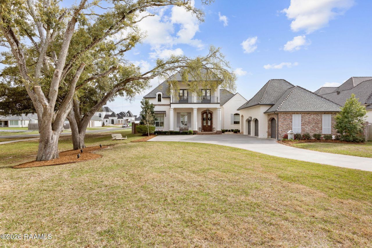 This exceptional custom estate is located in one of Lafayettes most desirable neighborhoods, Audubon Plantation, perfectly positioned in the heart of South Lafayettes most sought after developments and just minutes from top gyms, restaurants, Costco, Lourdes Hospital, and Youngsville. Nestled at the end of the neighborhood on a sprawling lot, this one of a kind home is surrounded by mature oak trees and lush landscaping, offering privacy and undeniable curb appeal.The timeless front elevation features white painted brick, grand custom double iron doors, stately porch columns, and a charming balcony ideal for relaxing and taking in the view. Step into a true backyard oasis with a resort style gunite pool, built in fire pit, and an impressive outdoor kitchen and entertaining area complete with an island, grill, and fireplace framed by dramatic brick arches. A climate controlled pool bath and large air conditioned storage room add thoughtful convenience.Inside, the grand foyer immediately impresses with soaring 15 foot groin vault ceilings and classic chandeliers. The living room showcases 15 foot coffered ceilings, custom built ins with elegant rounded arches, reclaimed wood accents, and walls of windows overlooking the outdoor retreat. The kitchen is a chefs dream with quartzite countertops, custom Danenberg cabinetry, a statement hood and island, and a full suite of Thermador appliances. A bar area with wine cooler, ice maker, and sink along with an extensive butlers pantry make this home ideal for entertaining.The primary suite is a private sanctuary featuring a sitting area with coffee bar, vaulted ceiling, fireplace, and serene backyard views. The spa like bath offers a luxurious walk in shower, soaking tub, quartzite finishes, and stunning chandelier.Additional highlights include specialty trim, antique doors, a grand mudroom, princess suite, guest living quarters, dedicated office, and a highly functional layout with no wasted space.