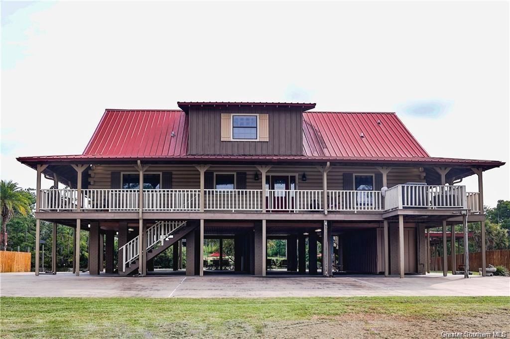 Make your riverfront dreams a reality with this 10,039 total sqft luxury log cabin. This one of a kind home has 2940 living sqft and 7099 sqft of tranquility outdoor living area. This property includes a double stall lighted boat house. This home sits on the deep navigable WestFork of the Calcasieu River, just minutes from Lake Charles on the water. The home, crafted out of large and rare wide-diameter logs, features luxury in a rustic setting. Walk in to an awe stunning living room with 25ft vaulted ceilings and a grand floor to ceiling custom stone fireplace. Also, included right off the main room is a large granite top wet bar, perfect to entertain all your guests. The kitchen is equipped with all granite countertops with a large high top eat in bar connected to the large island. On the main floor are 2 guest bedrooms with a full bathroom. The upstairs Master Suite is complete with on-suite bathroom featuring soaking tub, glass stall shower, his and her separate walk-in closet. Upstairs also features a large loft overlooking the main room with with a mini kitchenette. On the main floor outside offers a large outdoor living space with multiple sitting areas and 25' cedar ceilings, overlooking the Westfork river perfect for grilling and entertaining your guest. Overlooking the rails you'll see the well maintained landscaping over the entire property. The large fenced in lot with Newley replaced electric gates leading into the property on concrete driveway with ample parking under the home as well as around the home. The property offers a long range concrete boat launch that can handle large boats. All the docks have been completely rebuilt from the frame up with Rough cut treated framing and all composite decking with a concrete bulk head. Owner has not spared anything on this build. Down stairs under the home offers seating at ground level for all types of entertaining, along with a storage area and a full bath with a stand up shower. This property is a one of a kind and must see to appreciate the spectacular views of the river and floor to ceiling windows overlooking the water. All Measurements are more or less.
